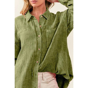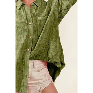 BiBi Raw Edge Detailed Mineral Washed Loose Fit Shirt