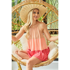 BiBi Rayon Span Jersey Color Block Tiered Halter Neck Cami