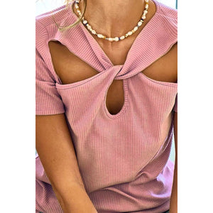 BiBi Rib Knit with Cut Out and Front Twist Detailed Top