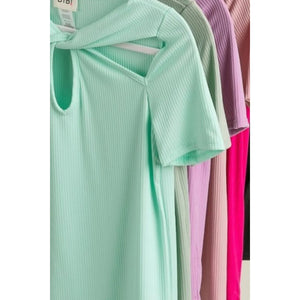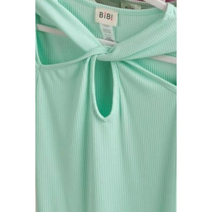 BiBi Rib Knit with Cut Out and Front Twist Detailed Top