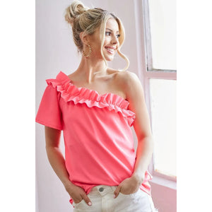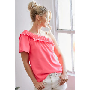 The Ruffled Asymmetrical Crepe One Shoulder Top is a chic and sophisticated piece that exudes elegance. With a flattering asymmetrical design and stylish ruffled detailing, this top is perfect for adding a touch of glamour to any outfit. Made from crepe fabric, it offers a luxurious look and feel. The one-shoulder style adds a modern and trendy touch, making this top a versatile option for both casual and dressy occasions. An ideal choice for those who appreciate contemporary and feminine fashion.