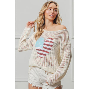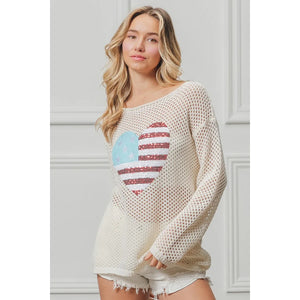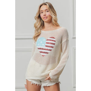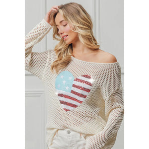The Sequin American Flag Heart Knit Cover Up is a charming and patriotic addition to your summer wardrobe. Featuring a heart shape adorned with sequins in an American flag motif, this cover-up is perfect for showing off your love for the USA. The knit fabric provides a comfortable and lightweight layer for the beach or pool. Pair it with your favorite swimsuit for a fun and festive look that exudes summer flair.