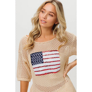 BiBi Sequin American Flag Knit Cover Up