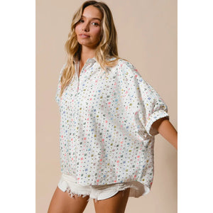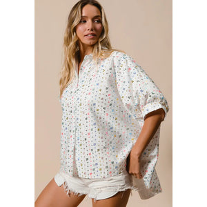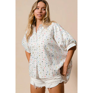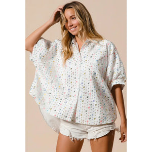 BiBi Sequin Striped Short Dolman Sleeve Blouse