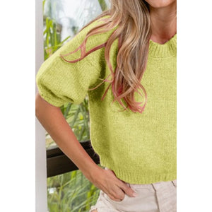 BiBi Short Puff Sleeve Knit Pullover Sweater