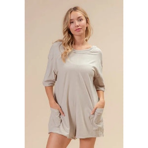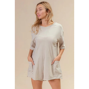 BiBi Short Sleeve Back Open Washed Romper