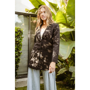 This sophisticated blazer features a single-breasted design with peaked lapels. Perfect for adding a touch of elegance to any outfit. Elevate your professional or formal look with this stylish piece. Make a chic statement with this classic and versatile blazer!