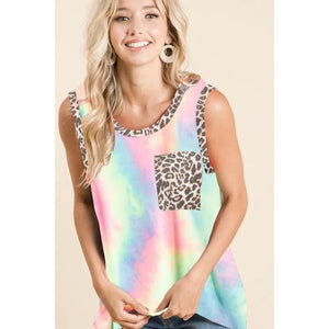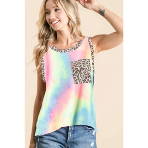 BiBi Sleeveless Tie Dye Top With Leopard Band