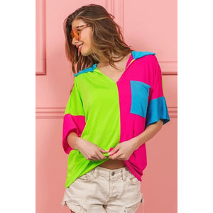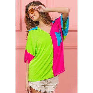 BiBi Slinky Knit Color Block V Neck Front Top