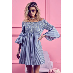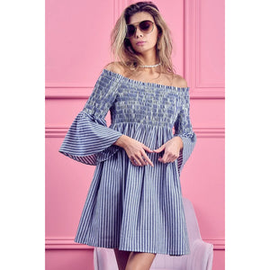 BiBi Smocked Off Shoulder Striped Dress
