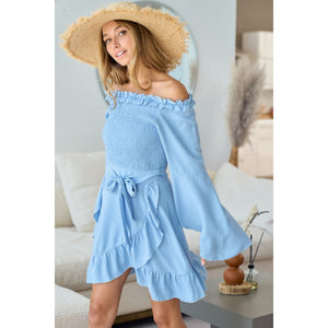 BiBi Smocked Ruffled Front Tie Mini Dress