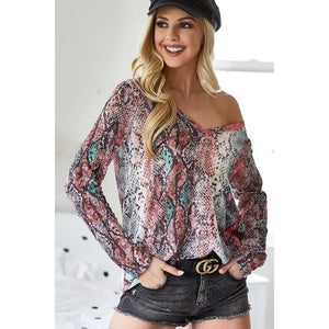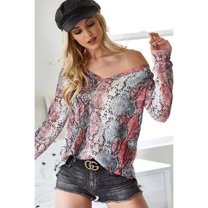 BiBi Snakeskin Print Low Gauge Hacci V Neck Top
