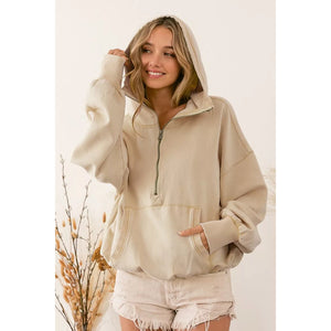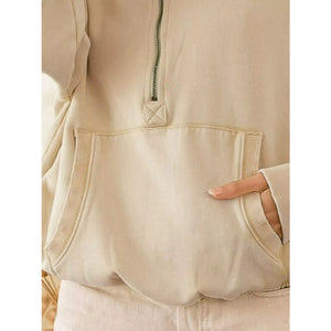 BiBi Stitch Detailed Elastic Hem Half Zip Fleece Hoodie