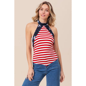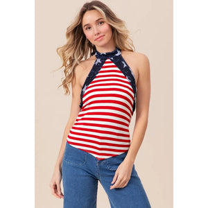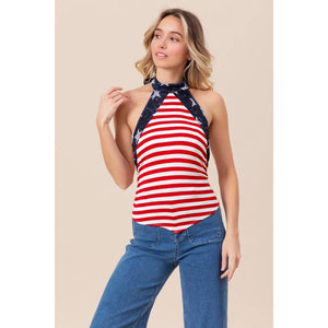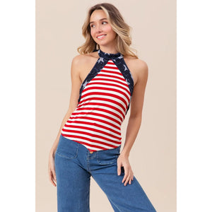 BiBi Stripe Jersey with Star Halter Neck with Tie Back