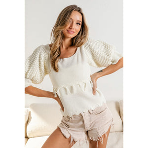 This short-sleeve tassel detail textured square neck sweater is a stylish and versatile piece for your wardrobe. The tassel detailing adds a playful and bohemian touch to the textured fabric. The square neck design offers a modern and flattering neckline. Pair it with high-waisted trousers for a chic office look, or with denim shorts for a casual weekend outfit. The short sleeves make it perfect for transitioning between seasons. Elevate your knitwear collection with this fashionable and comfortable tassel detail textured sweater that will effortlessly elevate your everyday style.