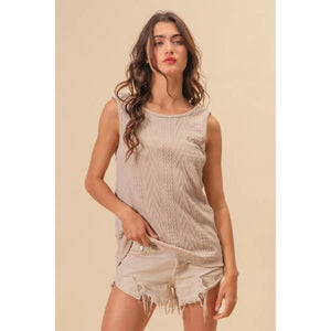 BiBi Textured Sweather Knit Twist Back Sleeveless Top