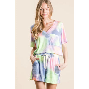 BiBi Tie Dye Casual Shorts with Twill Tape Drawstring