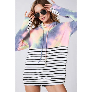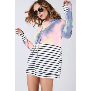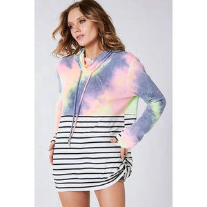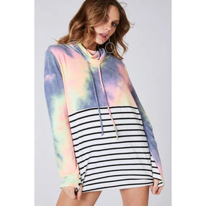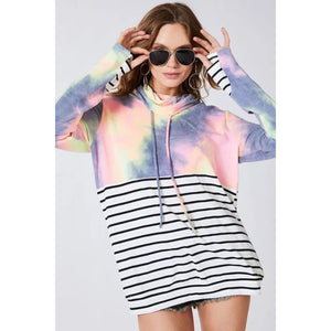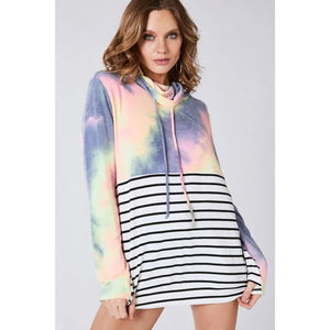 Add a pop of color to your wardrobe with this Tie Dye French Terry Cowl Neck Top. The unique tie-dye pattern creates a vibrant and eye-catching look that is perfect for any casual occasion. Made from soft French terry fabric, this top is both comfortable and stylish. The cowl neck detail adds a touch of elegance to the relaxed silhouette. Pair it with your favorite jeans or leggings for a fun and trendy outfit that will keep you cozy all day long.