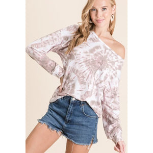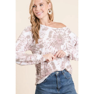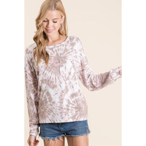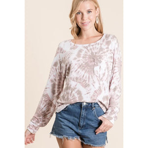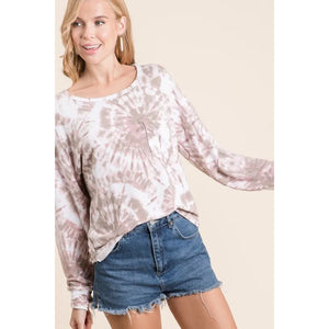 BiBi Tie Dye Print Terry Top with Front Patch Pocket