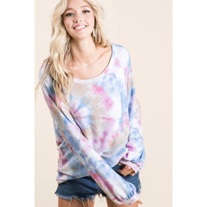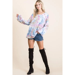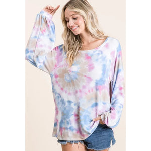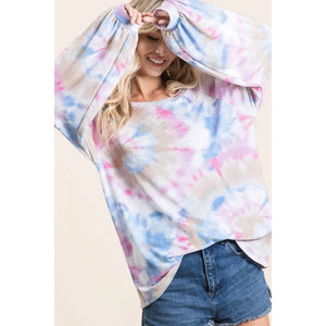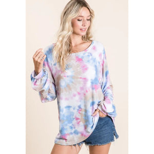 BiBi Tie Dye Print Terry Top With Puff Sleeves