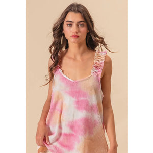 BiBi Tie Dye Printed Textured Woven with Ruffled
