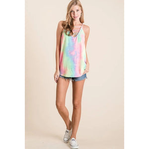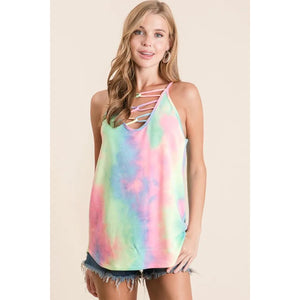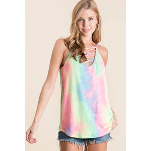 BiBi Tie Dye Terry Caged Neck Knit Camisole