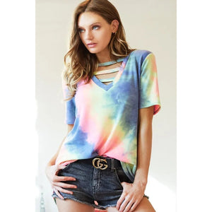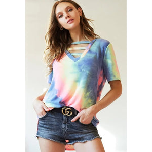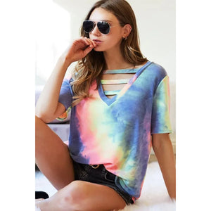BiBi Tie-Dye V-Neck Short Sleeve T-Shirt