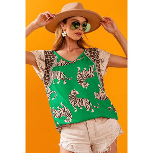 BiBi Tiger Printed Jersey Block T-Shirt with Aztec Trim