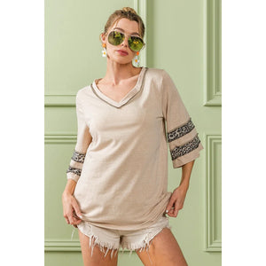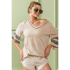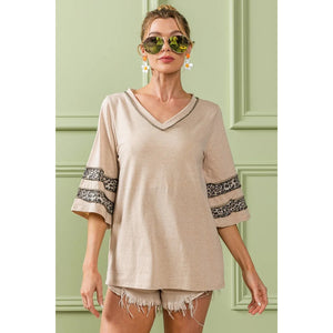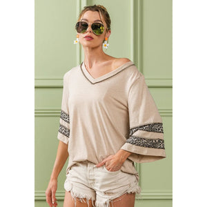 This triblend knit top features a chic leopard band detail for a trendy and fashionable look. The leopard band adds a pop of animal print to the classic knit top, giving it a bold and stylish edge. Made with soft and comfortable triblend fabric, this top offers both style and ease of wear. Elevate your wardrobe with this versatile and on-trend top that effortlessly combines comfort with a touch of print for a standout outfit.