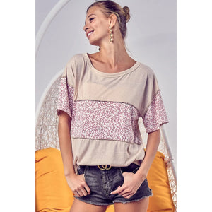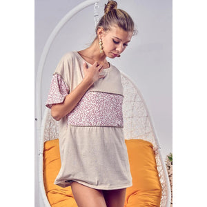 BiBi Triblend Knit with Leopard Block Out Stitching