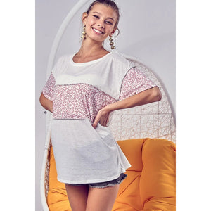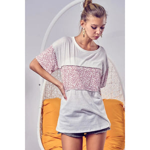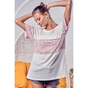 BiBi Triblend Knit with Leopard Block Out Stitching