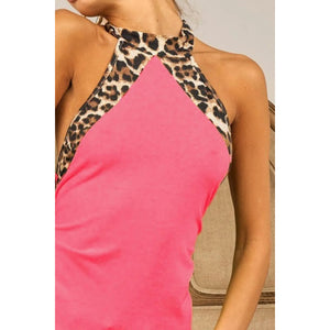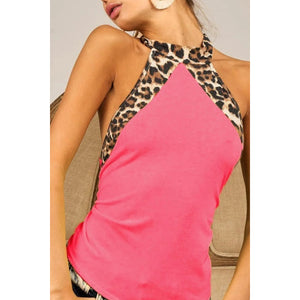 BiBi Triblend Leopard Halter Neck Tied Detailed Top