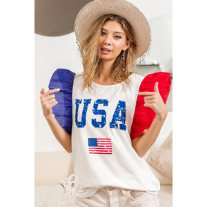 BiBi USA Theme Color Block Organza Ruffle Sleeve Top