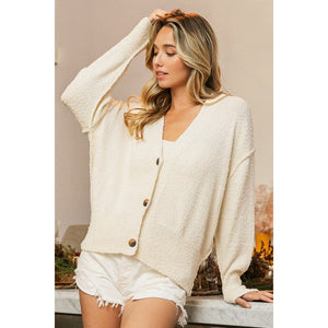 BiBi V-Neck Button Up Dropped Shoulder Cardigan
