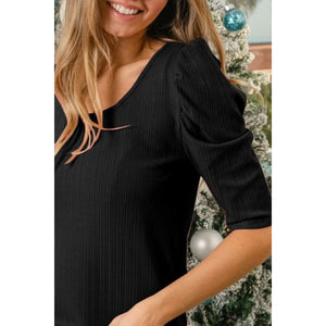 BiBi Verigated Rib Knit Puff Sleeves Shorts Top