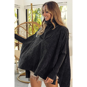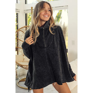 This premium oversized quarter-zip pullover sweatshirt features a luxuriously soft cotton-polyester blend construction with fleece lining for superior comfort and warmth. The relaxed fit silhouette offers effortless style while the quarter-zip closure provides adjustable ventilation. Designed with ribbed cuffs and hem for shape retention, this versatile piece transitions seamlessly from casual loungewear to street-ready fashion. The extended tunic length provides flattering coverage, making it perfect for pairing with leggings or jeans. Crafted for durability and comfort, this sweatshirt maintains its shape and softness wash after wash.