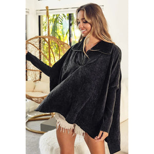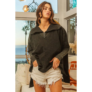 BiBi Vintage Washed Quilted Half Zip Top