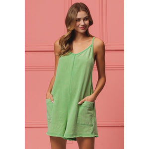 The vintage washed V-neck overalls with pockets are a stylish and versatile piece featuring a vintage washed finish for a relaxed look. These overalls have a V-neckline, adding a touch of femininity to the traditional overall style, and are designed with functional pockets for added convenience. Perfect for a casual and laid-back outfit with a trendy vintage vibe.