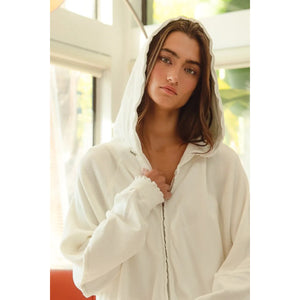 The Waffle Thermal And Terry Mix Washed Zip Up Hoodie is a versatile and stylish addition to any wardrobe. This hoodie features a unique blend of waffle thermal and terry materials for a cozy and comfortable feel. The washed design adds a laid-back and lived-in look, making it perfect for casual outings or lounging at home.