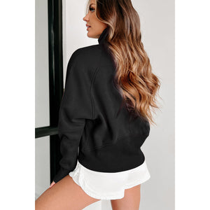 Black Fleece Lined Zip Up Stand Collar Thumbhole Sleeve Sweatshirt