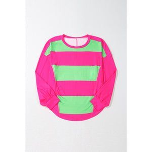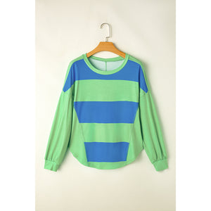 Blue Colorblock Striped Drop Shoulder Loose Top