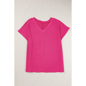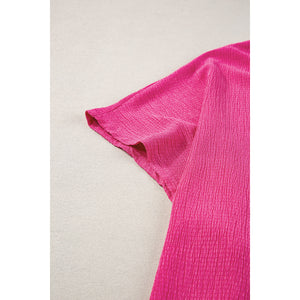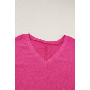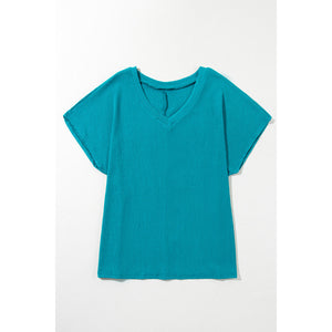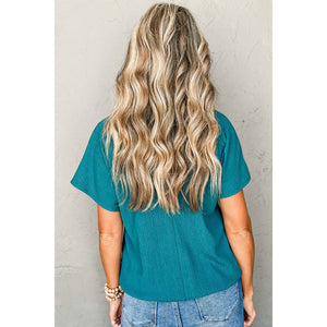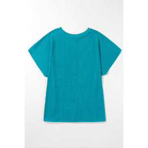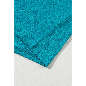Blue Sapphire Textured V Neck Bubble Hem Plus Top