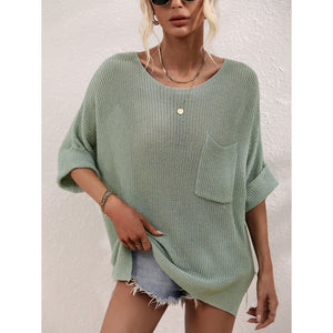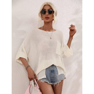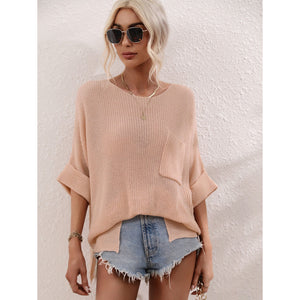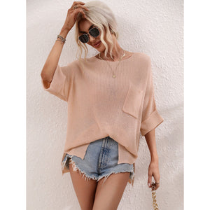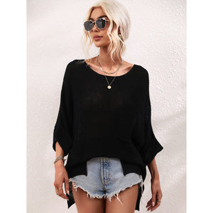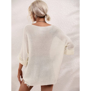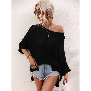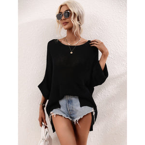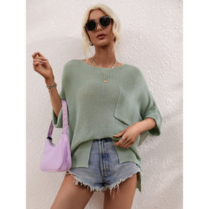 Boat Neck Cuffed Sleeve Slit Tunic Knit Top