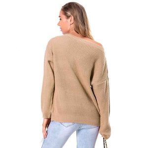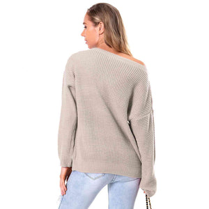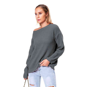 Boat Neck Drop Shoulder Long Sleeve Sweater