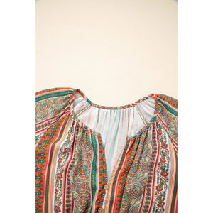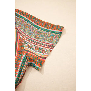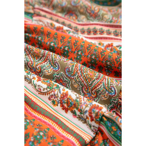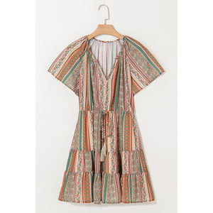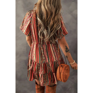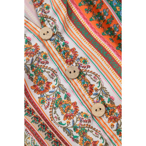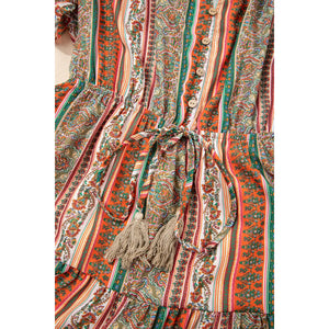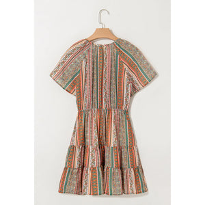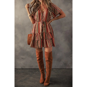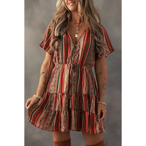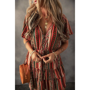 Bohemian Floral Print Buttoned V Neck Ruffle Tiered Dress
