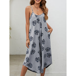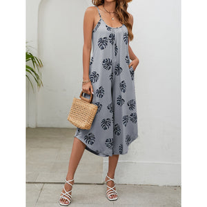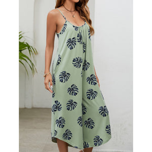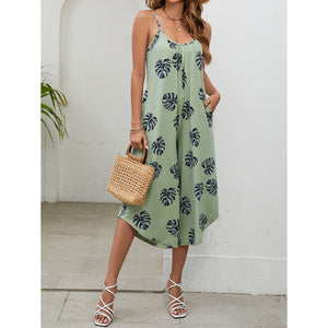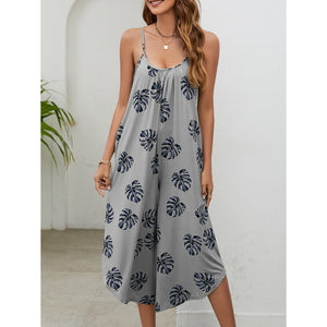 Botanical Print Spaghetti Strap Scoop Neck Jumpsuit