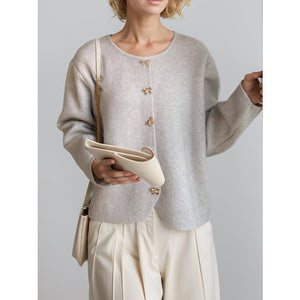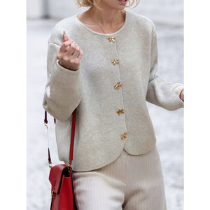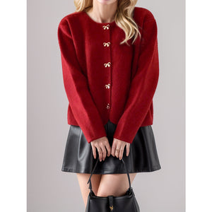 Bow Button Down Round Neck Long Sleeve Cardigan