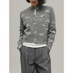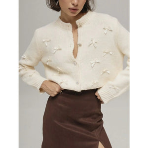 Bow Button Up Long Sleeve Cardigan