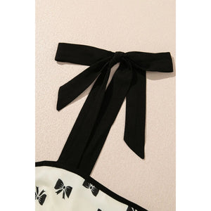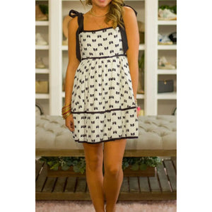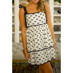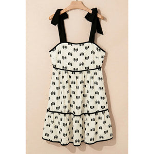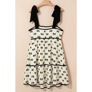 Bow Knot Color Contrast Trim Knotted Shoulder Mini Dress