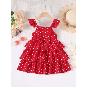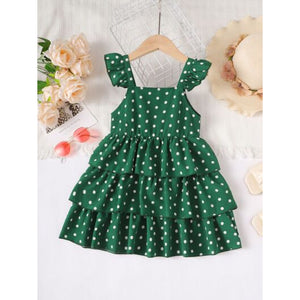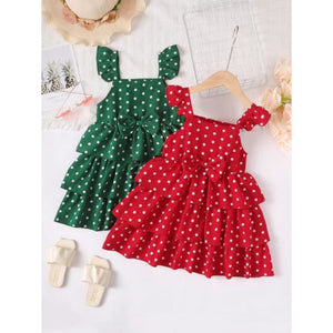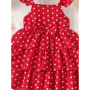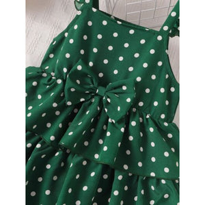 Bow Polka Dot Square Neck Layered Dress